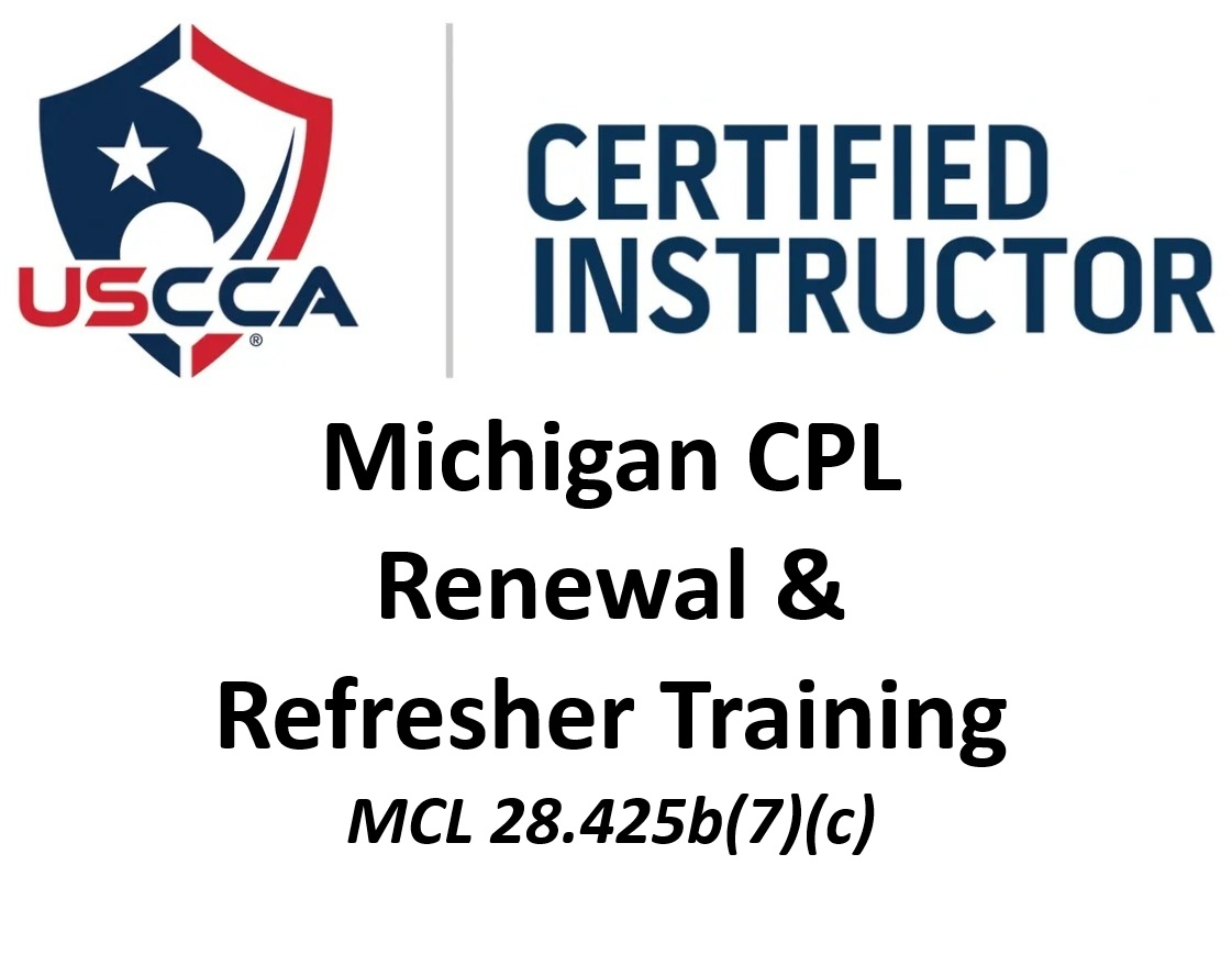 This training will meet and exceed the CPL renewal requirements specified by Michigan State Law (3hrs reviewing the law and course materials plus 1 hour range time: pursuant to MCL 28.425b(7)(c).